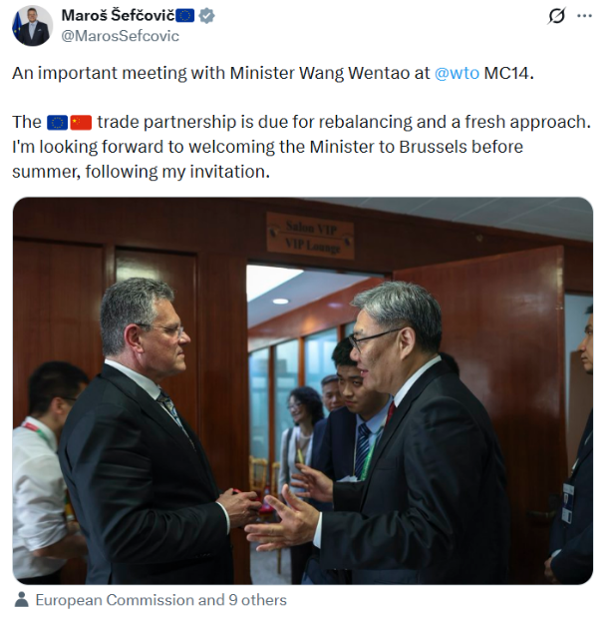 Zoom In: On X, MEP Bernd Lange celebrated the Parliament’s adoption of a strong negotiating mandate for the trilogues. Parliament’s adoption was also noted by Commissioner Maros Sefcovic, who hinted at informal discussions with USTR Jamieson Greer in Yaounde during the WTO’s 14th Ministerial Conference.